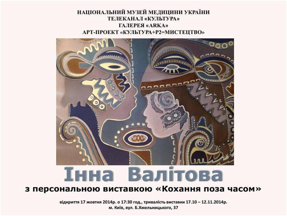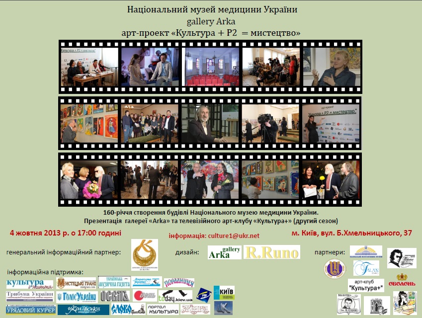 04.10.2013 р. – 16.10.2013 р. ‒ 160-річчя створення будівлі Національного музею медицини України. Презентація ‒ галереї «Arka» та телевізійного арт-клубу «Культура+» (другий сезон).