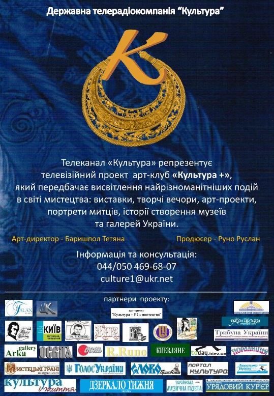 МЕДІА-ЦЕНТР УНІВЕРСИТЕТУ "УКРАЇНА" − ІНФОРМАЦІЙНИЙ ПАРТНЕР АРТ-ПРОЕКТУ "КУЛЬТУРА+Р2=МИСТЕЦТВО" ТЕЛЕКАНАЛУ "КУЛЬТУРА ТА ГАЛЕРЕЇ "АРКА"