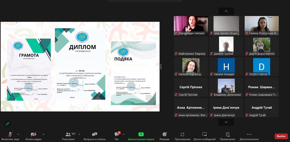 В рамках відкриття конференції було нагородження переможців у І турі Всеукраїнського конкурсу студентських наукових робіт з галузей знань і спеціальностей 2023-2024 рр.