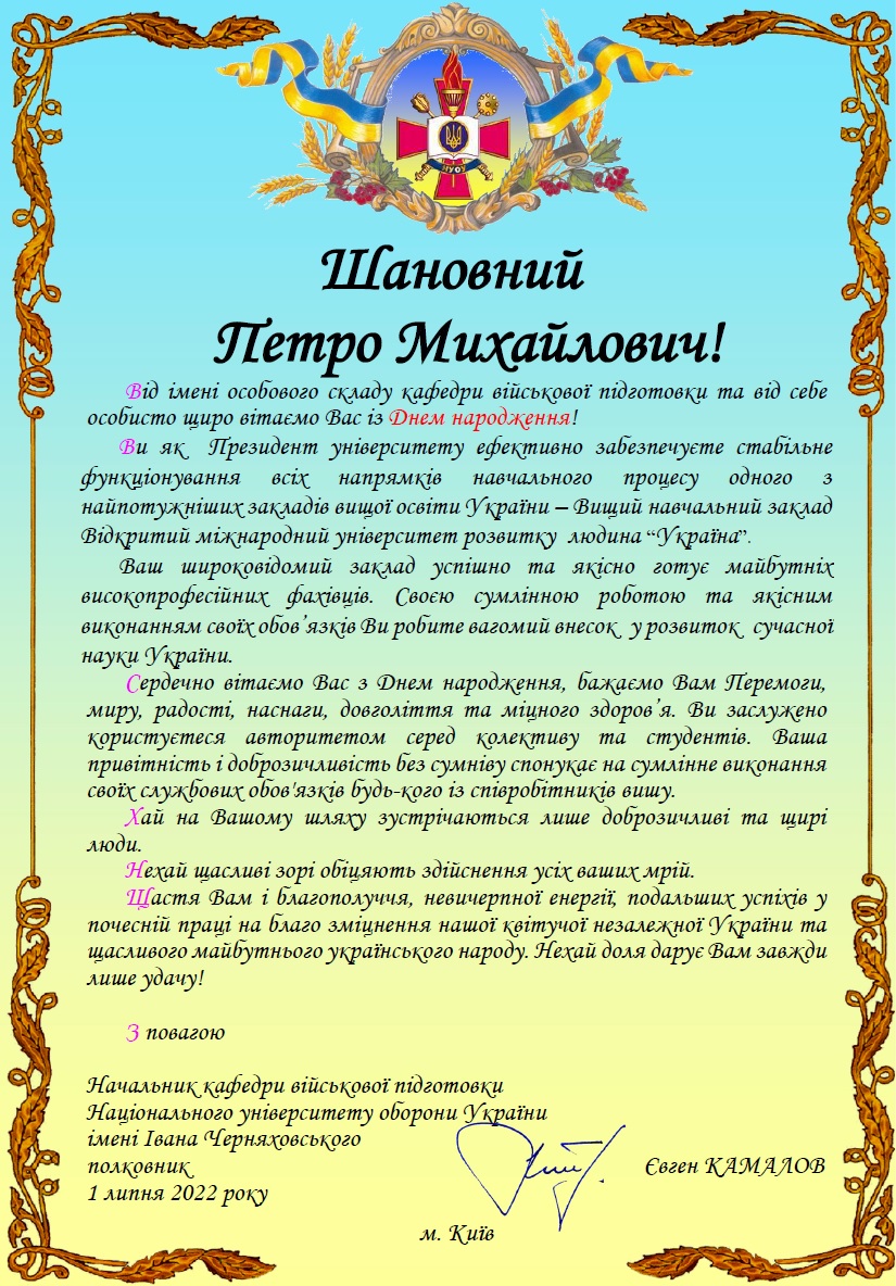 Колектив та студентство Університету УКРАЇНА щиро вітають