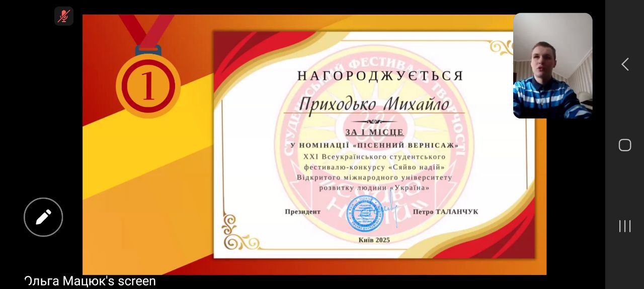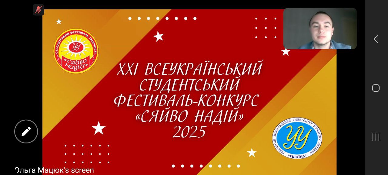 В Університеті Україна 28.02.2025 року відбулося Нагородження переможців XXI Всеукраїнського студентського фестивалю-конкурсу "Сяйво надій" 2025