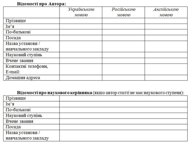 Мова статті – українська. Обсяг 8-12 сторінок.