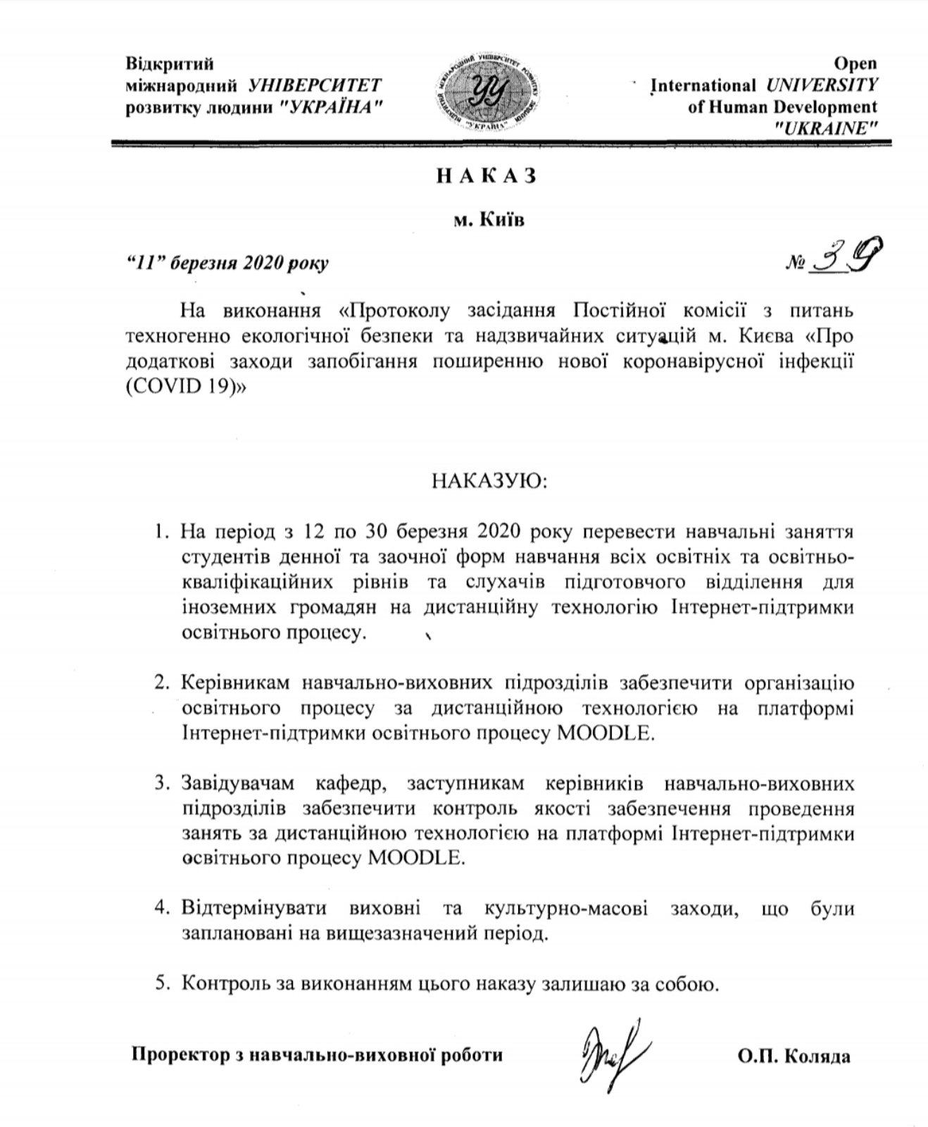З 12 по 3 квітня всі заняття переводяться на ДИСТАНЦІЙНУ технологію Інтернет-підтримки освітнього процесу на платформі MOODLE - https://vo.ukraine.edu.ua