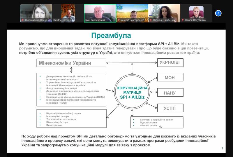 Під час засідання було проведено презентацію платформи SPI, детально обговорено та узгоджено для кожного учасника інноваційного процесу задачі, які вони можуть виконувати в рамках програми розбудови інноваційної України.